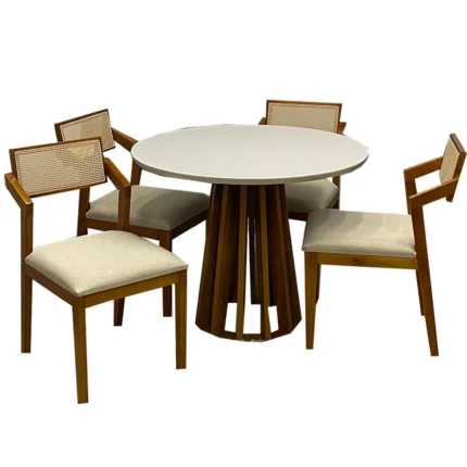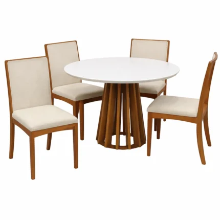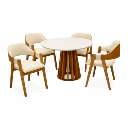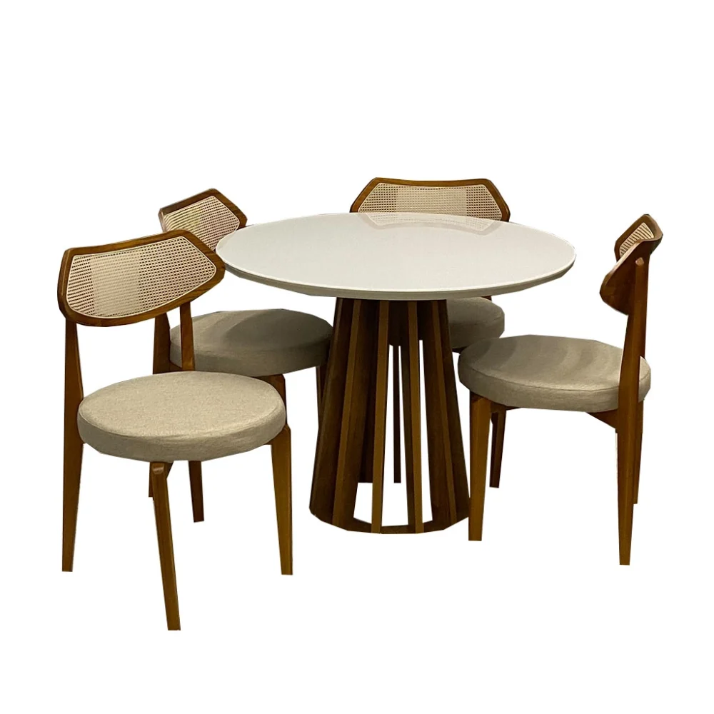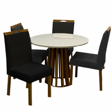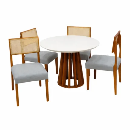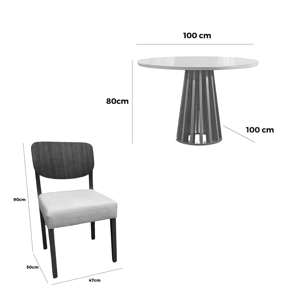 Mesa de Jantar Berlim 100cm Redonda com Vidro e 4 Cadeiras California em Veludo Estofadas Cel Móveis