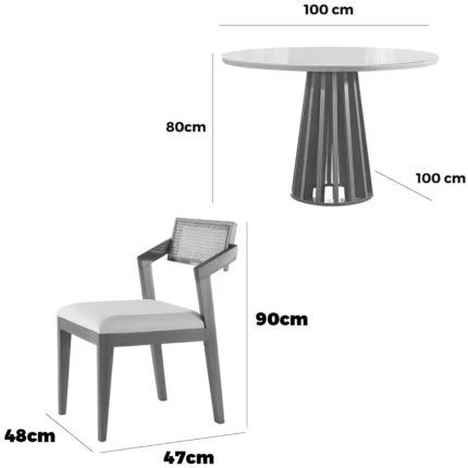 Mesa de Jantar Berlim 100cm Redonda com Vidro e 4 Cadeiras California em Veludo Estofadas Cel Móveis