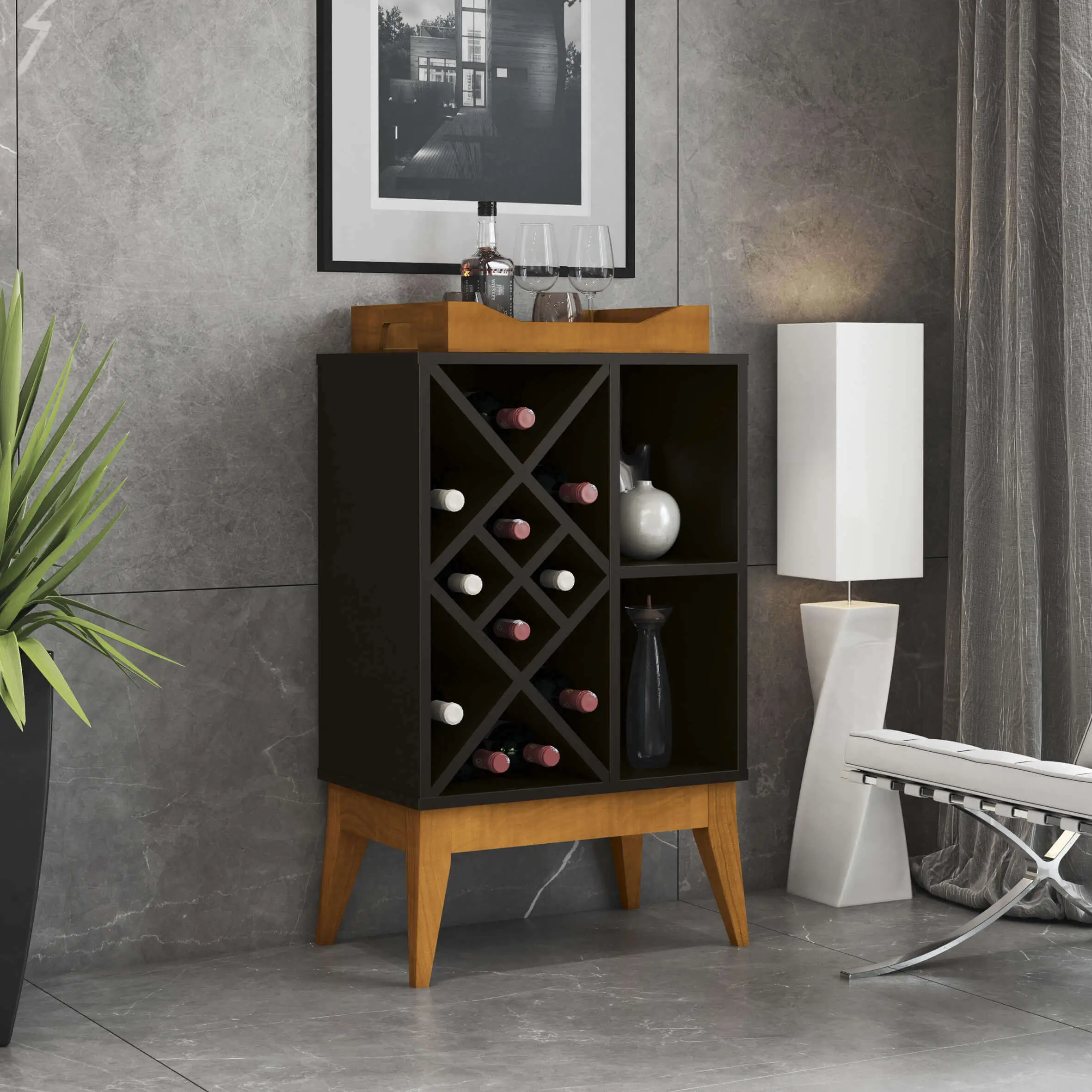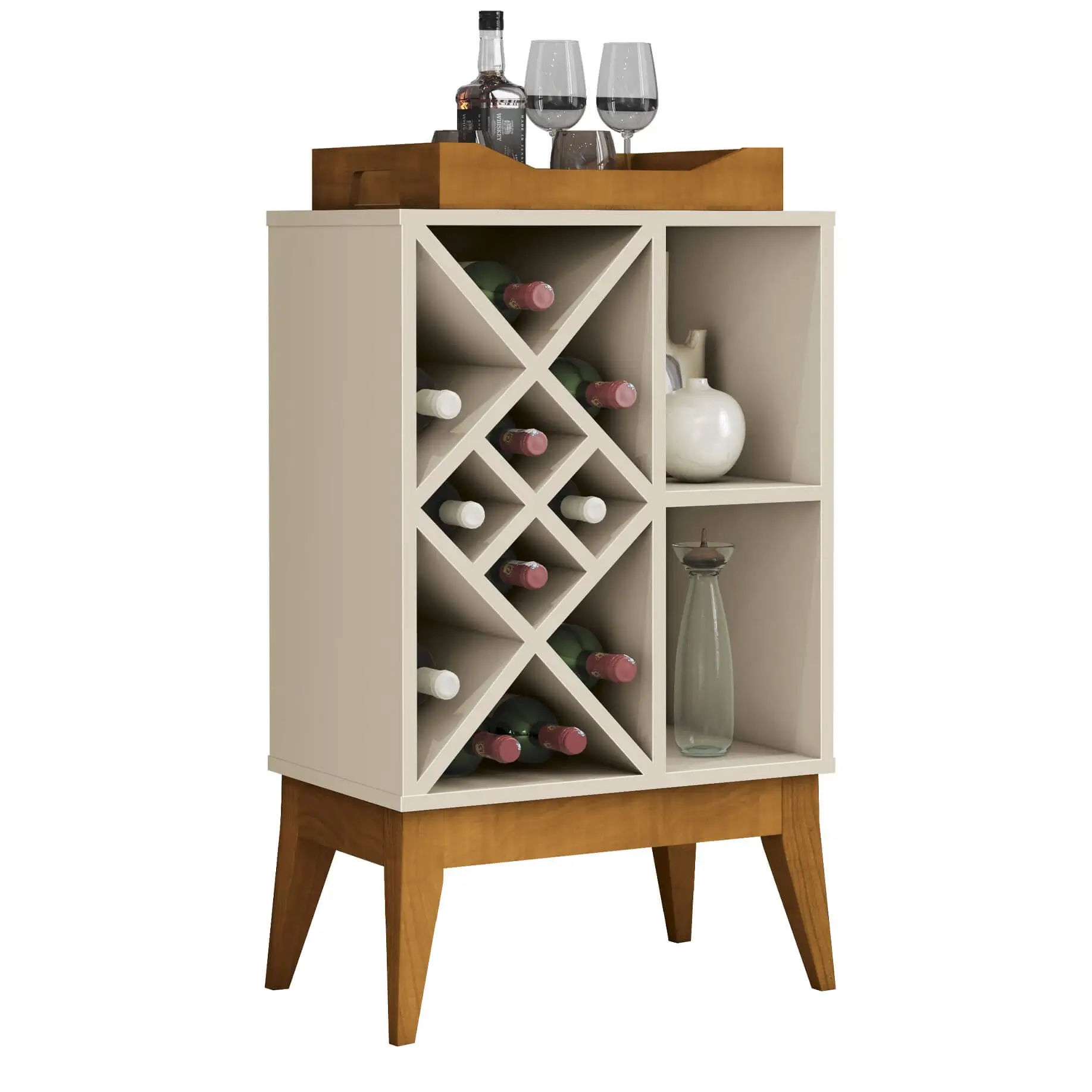Aparador Bali Bar Adega com Bandeja Espelhada e Pés em Madeira Edn Móveis