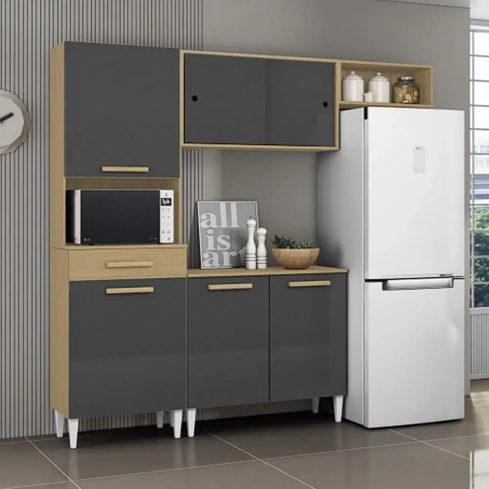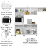 O Armário de Cozinha Isabelle 6 Portas 1 Gaveta Aramoveis é perfeito para deixar sua cozinha mais harmônica e organizada. O paneleiro cheio de estilo, possui espaço para organizar os utensílios e ainda conta com nichos para micro-ondas ou forno elétrico, tornando o ambiente mais funcional e aproveitando melhor o espaço. O balcão é ideal para armazenar os mantimentos e utensílios da melhor forma. Além de possuir armário aéreo com duas portas de correr! Ideal para quem deseja praticidade e funcionalidade em qualquer ambiente. Conta com pés em material resistente que não agridem o piso.