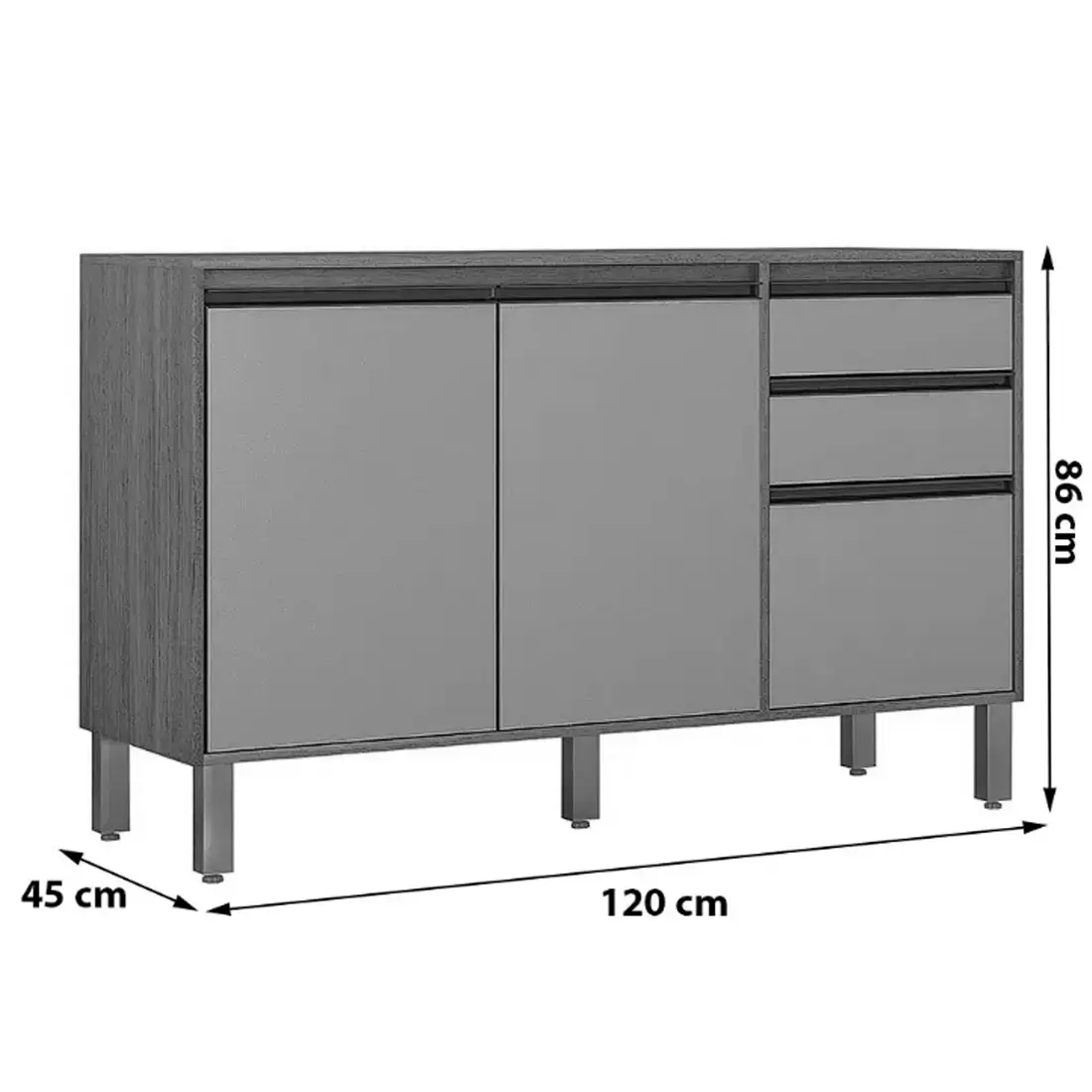 Balcão Eduarda 3 Portas 2 Gavetas para Cozinha Chf