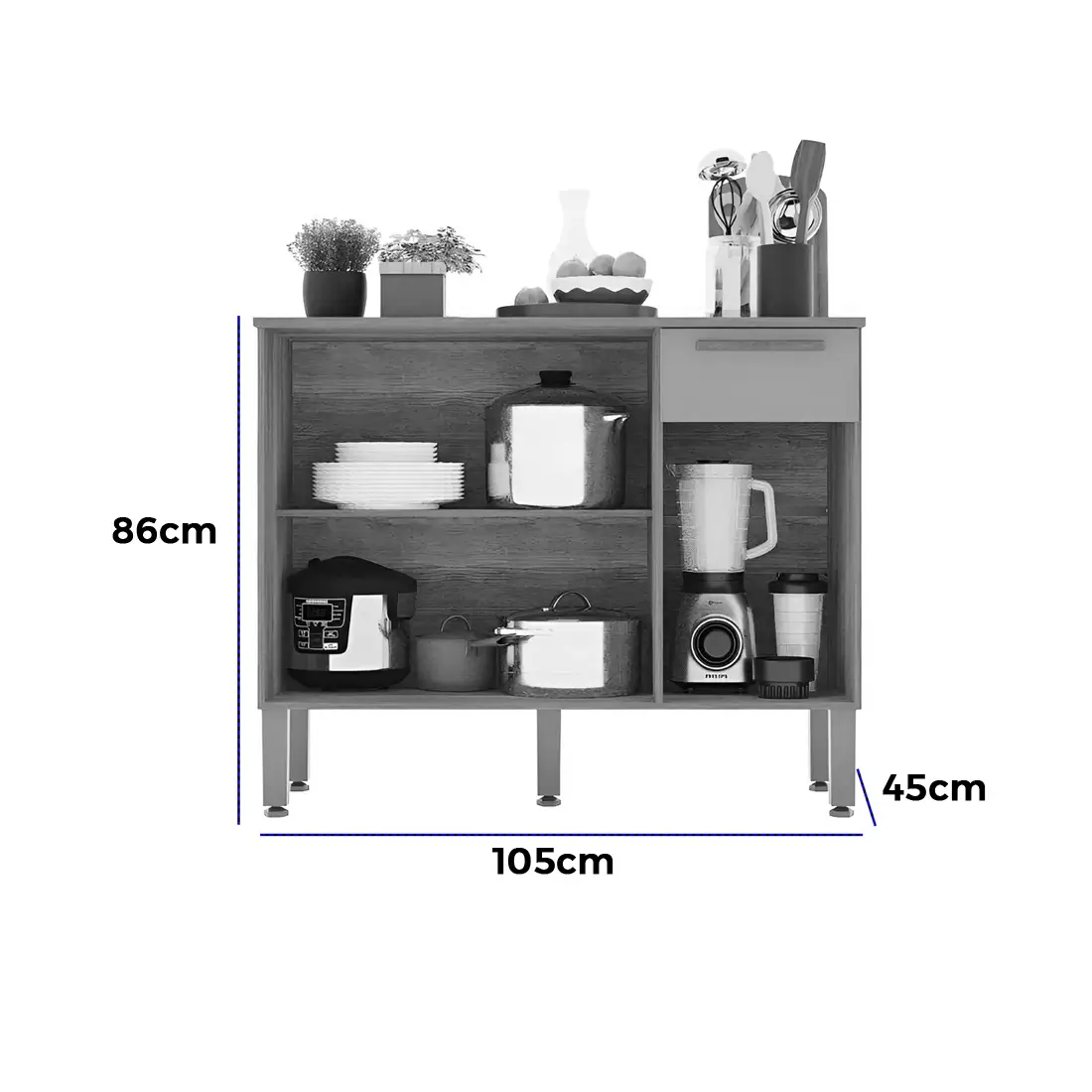 Balcão Madri 3 Portas 1 Gaveta para Cozinha Salleto