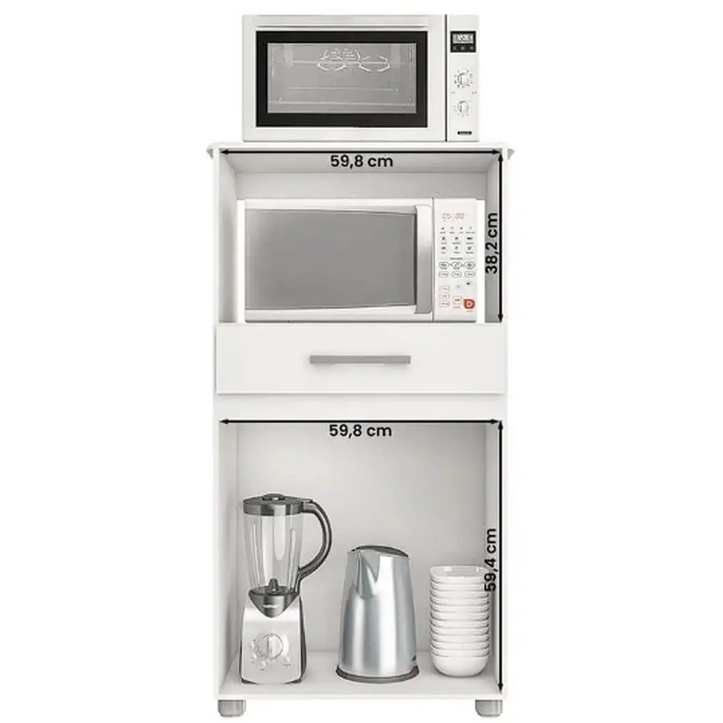 O balcão possui uma estrutura resistente que garantirá durabilidade ao longo dos anos, proporcionando um excelente custo-benefício. Além disso, as portas possuem puxadores que facilitam o acesso aos seus pertences com um toque charmoso. A gaveta desliza suavemente, oferecendo praticidade no uso diário.