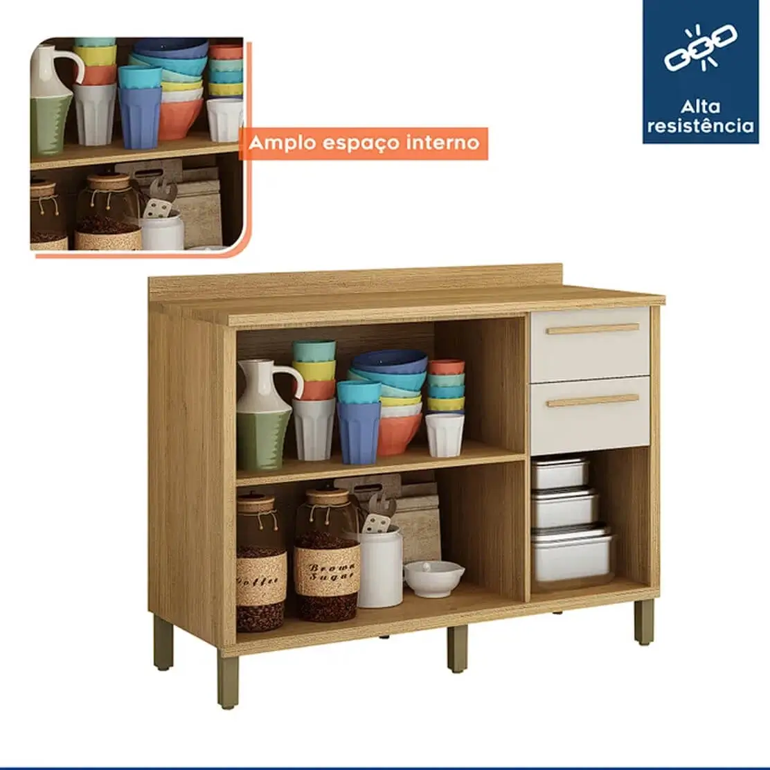 O Balcão Torino é fabricado com materiais de alta qualidade, garantindo durabilidade e resistência. E o melhor de tudo é que ele é super fácil de limpar, permitindo que você mantenha sua cozinha impecável sem grandes esforços.