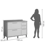 Com um design sofisticado e acabamento impecável, o Balcão Torino 3 Portas 2 Gavetas para Cozinha Valdemoveis oferece o espaço ideal para armazenar utensílios de cozinha, panelas, eletrodomésticos e o que mais você precisar. Além disso, ele conta com três portas e duas gavetas espaçosas, garantindo organização e funcionalidade para o seu dia a dia.