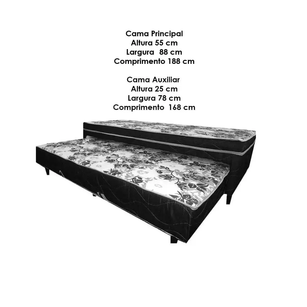 Bicama Box Solteiro Conjugada Ortopédica com Cama Auxiliar