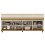 Com o tamanho ideal para a sua sala de jantar, cozinha ou até mesmo na sua sala de estar, este buffet versátil oferece espaço para pratos, talheres, copos, e o que mais você precisar guardar. Seja para receber visitas ou para o dia a dia, este móvel será o destaque da sua decoração.