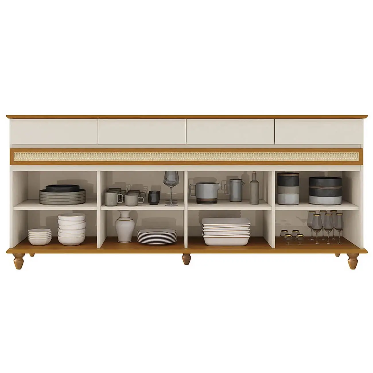 O Buffet Açores 4 Portas 4 Gavetas EDN Off White Cedro possui estilo clássico, oferecendo quatro portas e quatro gavetas para armazenar todos os seus pertences com facilidade. O design adiciona um toque de sofisticação a qualquer ambiente, enquanto a qualidade dos materiais garante durabilidade e resistência.