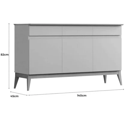 Este móvel é ideal para armazenar louças, talheres, bebidas e outros objetos, mantendo seu ambiente organizado e livre de desordem. Suas duas portas espaçosas revelam prateleiras internas que otimizam o espaço, permitindo que você categorize seus pertences de forma prática. A superfície do buffet também oferece um excelente apoio para bandejas, garrafas e itens decorativos, agregando ainda mais charme ao seu espaço.