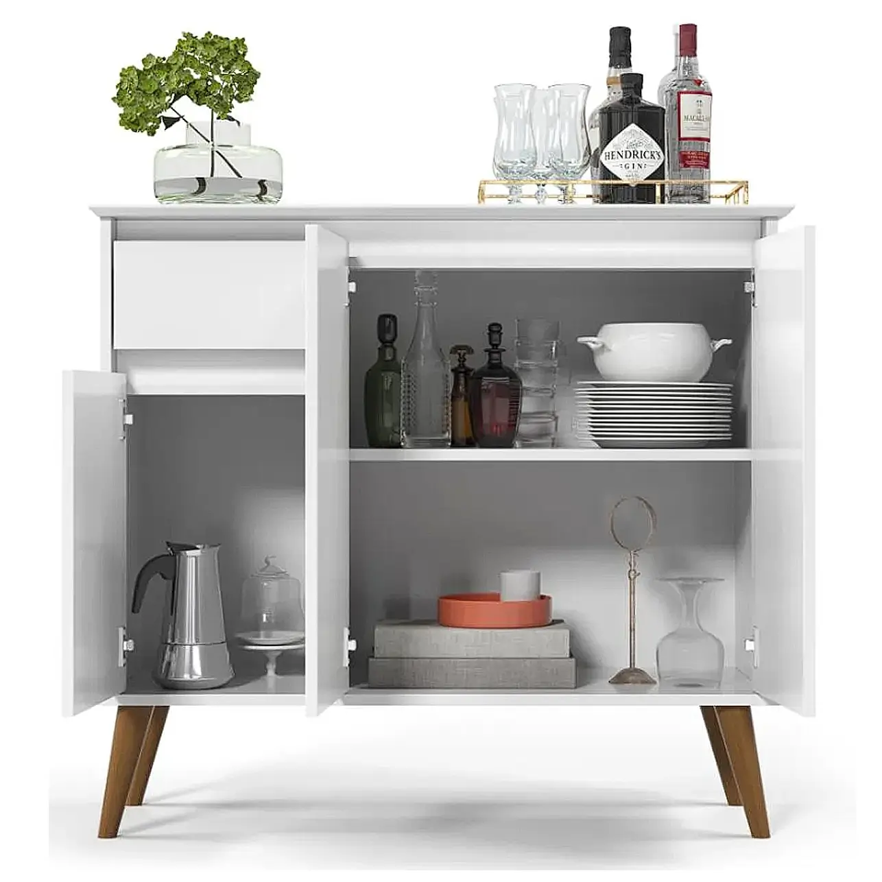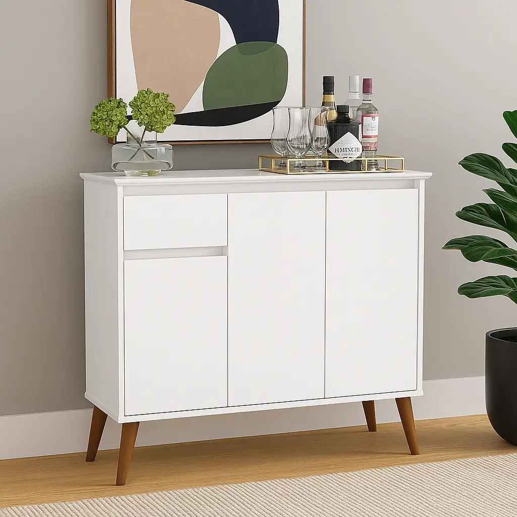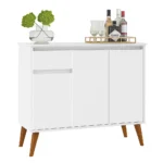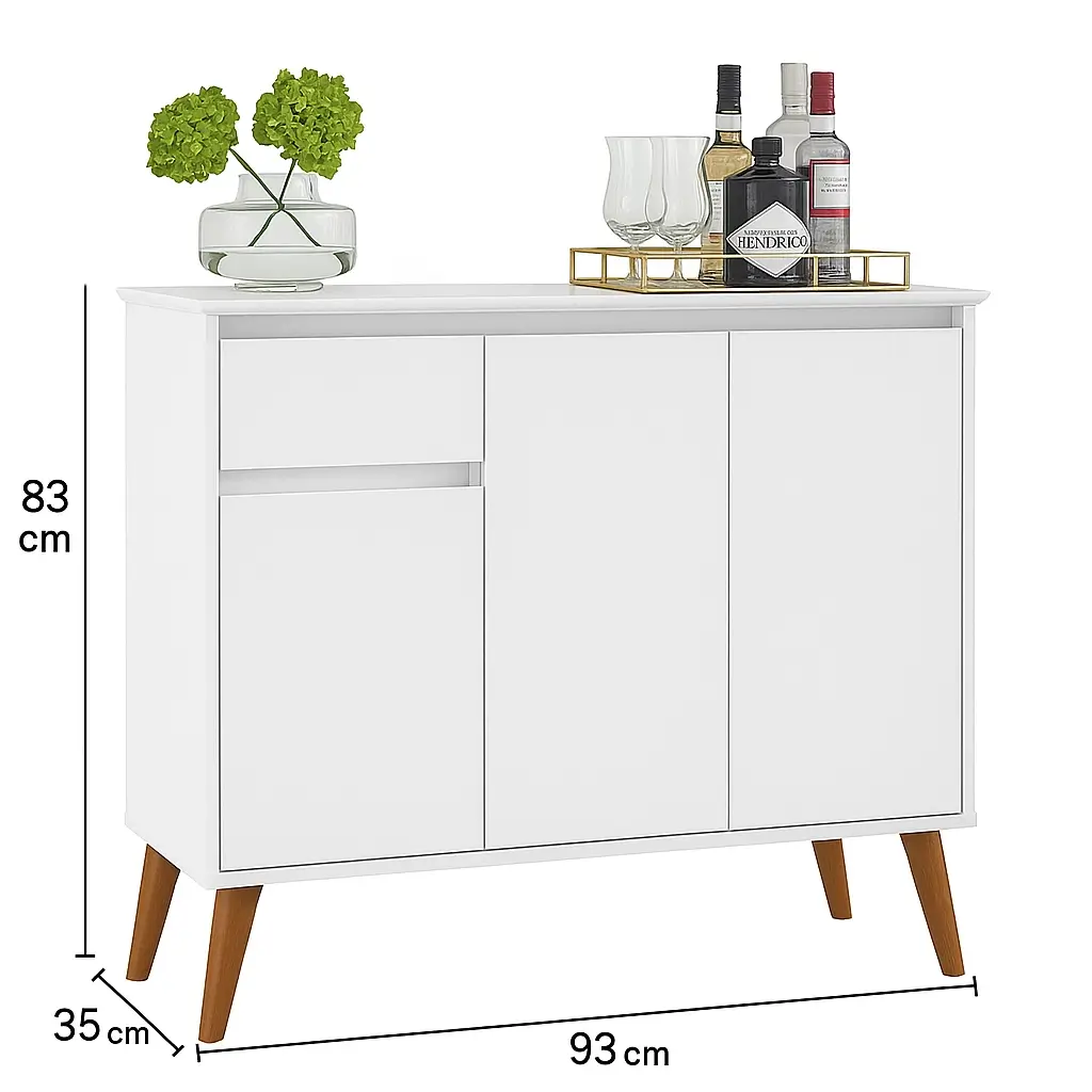 Confeccionado com materiais de alta qualidade, o Buffet Veneza garante durabilidade e resistência. Suas três portas e uma gaveta espaçosa proporcionam soluções versáteis para armazenar louças, talheres, taças, livros ou o que mais você precisar, mantendo tudo ao alcance das mãos e fora de vista.