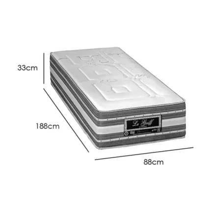 Estrutura em Molas Nanolastic; Placa EPS; Ortopillow; Bordado em Matelassê; Manta de Espuma D26 Pró; Faixa Lateral em Camurça; No Turn (não precisa virar); Tratamento Antialérgico e Antiácaro; Tecido em Malha e Camurça; Acabamento em Debrum |