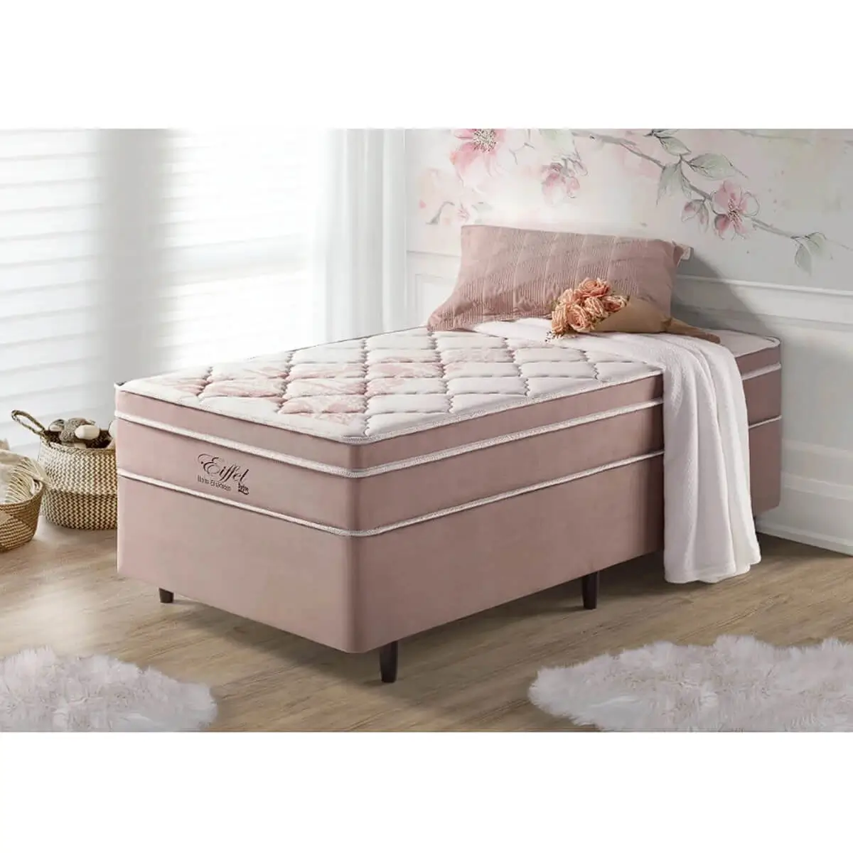 O Colchão Eiffel Solteiro 88×188 com Molas Ensacadas Anjos é simplesmente Sensacional. Possui Molas Ensacadas, estofamento em espuma D26, revestido em malha e poliéster e ainda conta com uma linda estampa da Torre Eiffel no tampo.