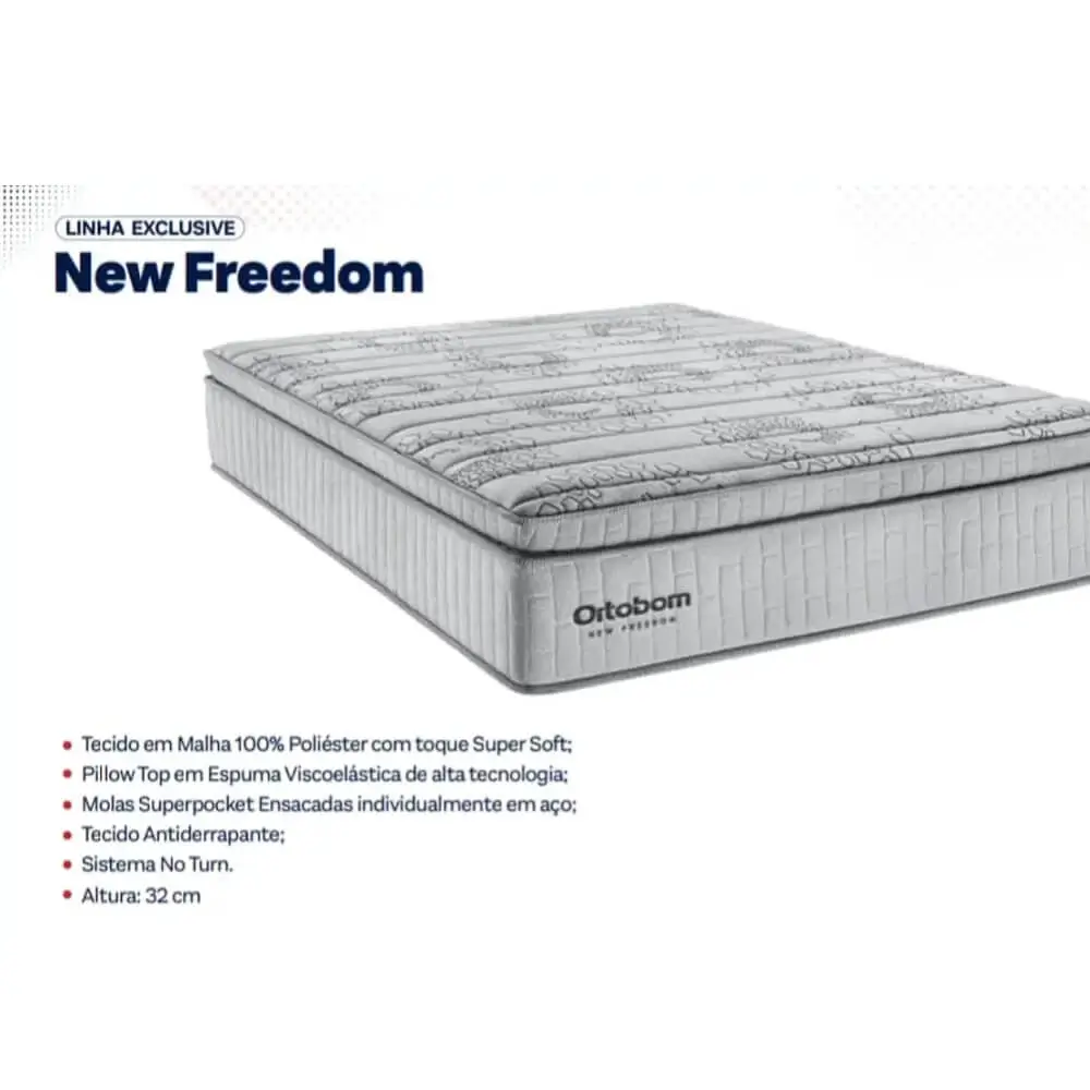 O Colchão New Freedom não só oferece conforto superior, como também foi projetado para durar. Fabricado pela renomada Ortobom, este colchão é feito com materiais de alta qualidade que garantem durabilidade e resistência excepcionais. Você pode descansar tranquilo(a) sabendo que está investindo em um produto que vai te acompanhar por muitas noites relaxantes.