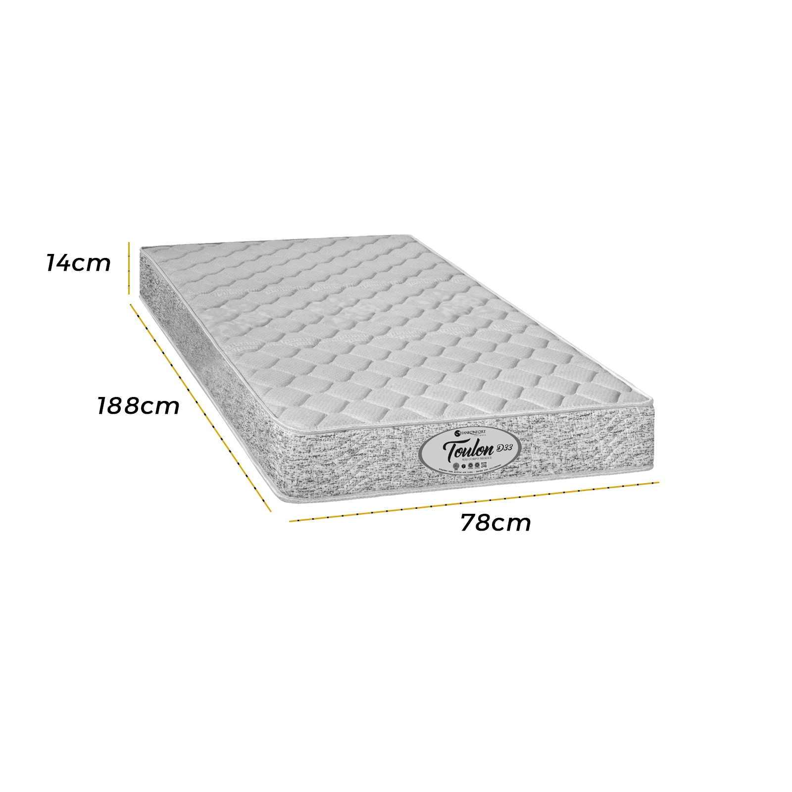 Colchão Toulon D33 Solteiro 78x188x14cm |