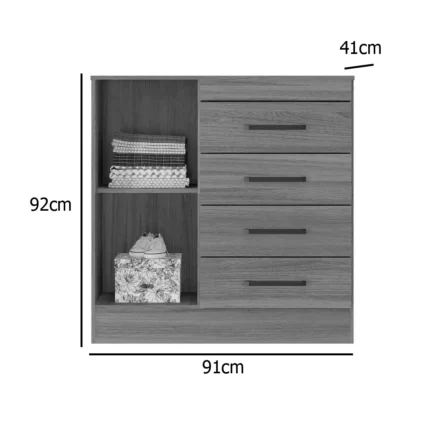 A Cômoda Angra 2 Portas 4 Gavetas Fellicci é a união perfeita entre espaço de armazenamento e estilo refinado. Projetada para otimizar a organização do seu quarto, ela oferece uma solução completa para guardar roupas, acessórios e outros itens essenciais. Com suas quatro gavetas espaçosas, você tem o lugar ideal para peças menores, enquanto as duas portas revelam um compartimento com prateleira interna, perfeito para itens maiores ou caixas organizadoras.