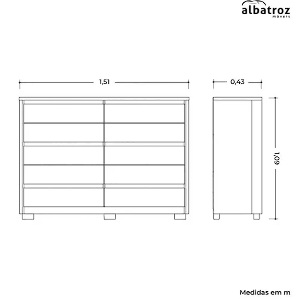 Cômoda Duetto 10 Gavetas Albatroz