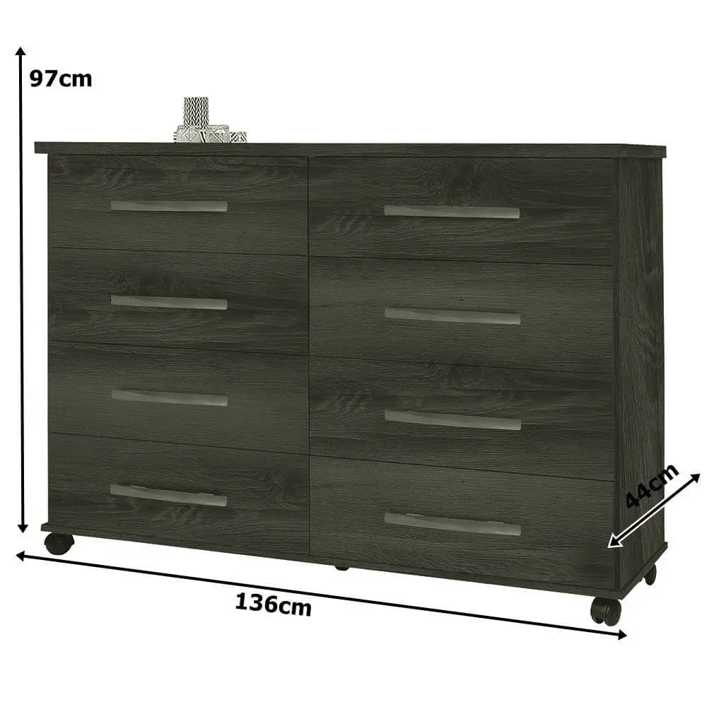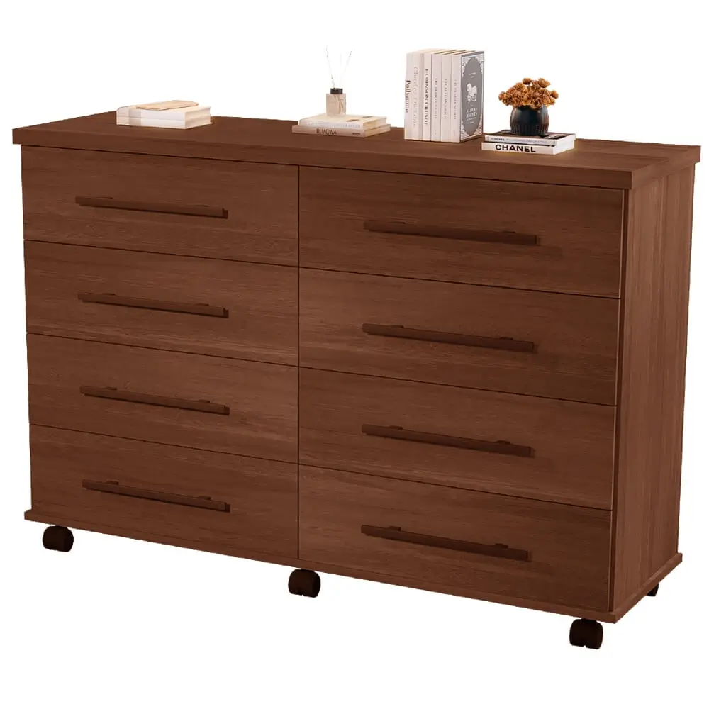 Cômoda Jade com 8 Gavetas Corrediça Telescópica e Rodinhas