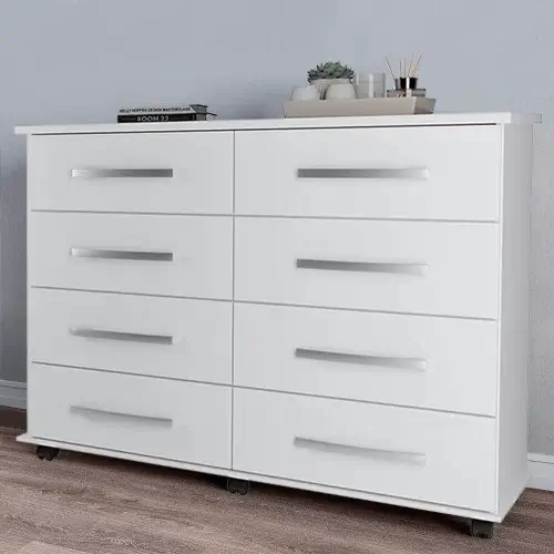 Existe uma infinidade de modelos de Cômoda disponíveis de acordo com a sua necessidade. Mas, antes de tudo é ideal medir o espaço livre para o móvel e conhecer os materiais em que são produzidos. Isso ajudará a efetuar uma compra perfeita. Além disso saber quem usará o móvel, desse jeito, você tem noção do espaço necessário. Normalmente, as mulheres tendem a usar mais espaço para guardar suas roupas, acessórios e sapatos. Então, nesse caso é ideal que a cômoda possua dimensões grandes. Como por exemplo a Cômoda Jade com 8 Gavetas Corrediça Telescópica e Rodinhas.