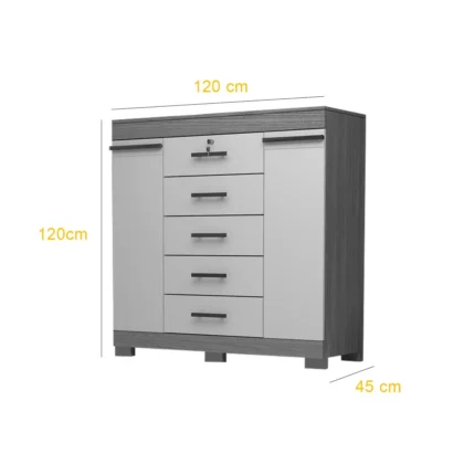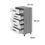 Com suas cinco gavetas espaçosas, oferece amplo espaço para manter tudo no lugar. As corrediças telescópicas garantem um abrir e fechar suave e silencioso, enquanto a sua estrutura robusta e o acabamento impecável garantem durabilidade.