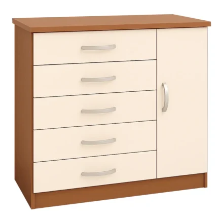 A Cômoda Maxi Evidência Móveis confeccionada com matérias de qualidade, possui 5 gavetas para deixar os seus pertences organizados e sempre à mão. Está disponíveis em 3 cores que combinarão perfeitamente com toda sua decoração.