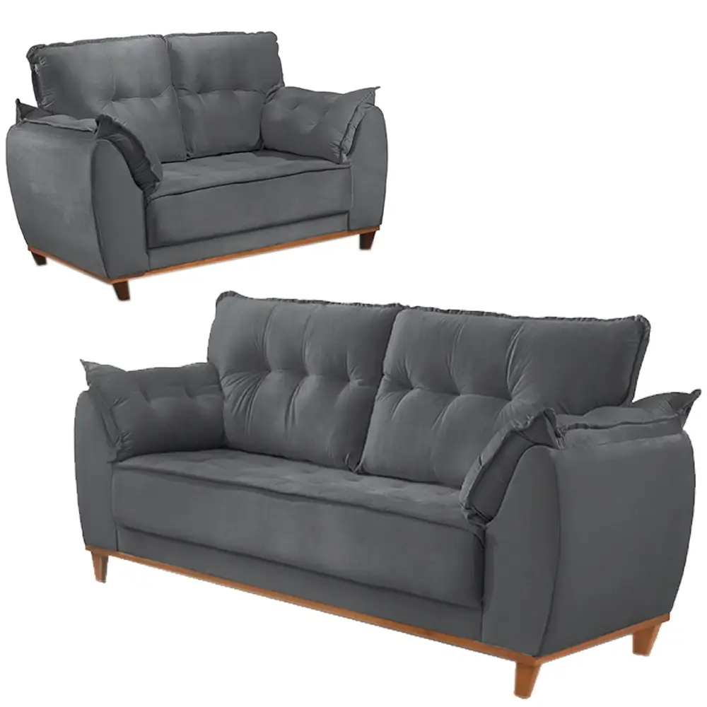 Conjunto de Sofá Espanha com 2 e 3 Lugares Tecido Veludo JC Estofados