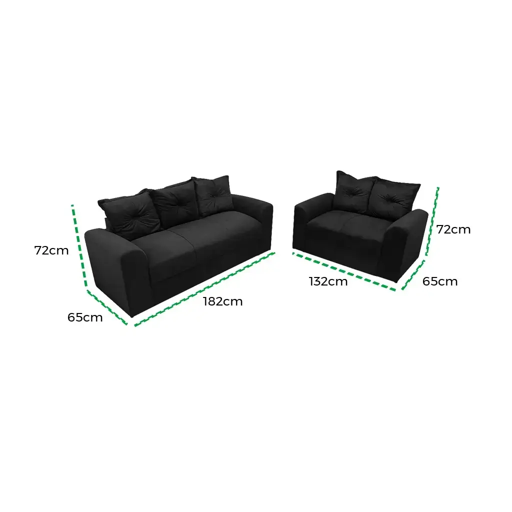 Composto por um sofá de 2 lugares e outro de 3 lugares, o conjunto oferece amplo espaço para reunir família e amigos com muito mais conforto. As almofadas soltas e bem estruturadas proporcionam o apoio ideal para longas conversas, momentos de lazer ou simplesmente relaxar após um dia cansativo. Além disso, a estrutura reforçada garante resistência e durabilidade, sendo um investimento de longa vida útil para seu lar.
