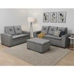 Com design contemporâneo e acabamento impecável, este conjunto de sofás traz um toque especial para qualquer ambiente. O tecido de alta qualidade garante durabilidade e facilidade de limpeza, tornando-o perfeito para famílias ocupadas.