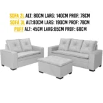 O puff incluído no conjunto serve como um apoio extra para os pés ou assento adicional, tornando-o versátil e funcional. Além disso, os sofás de 2 e 3 lugares oferecem espaço suficiente para acomodar toda a família e os amigos.