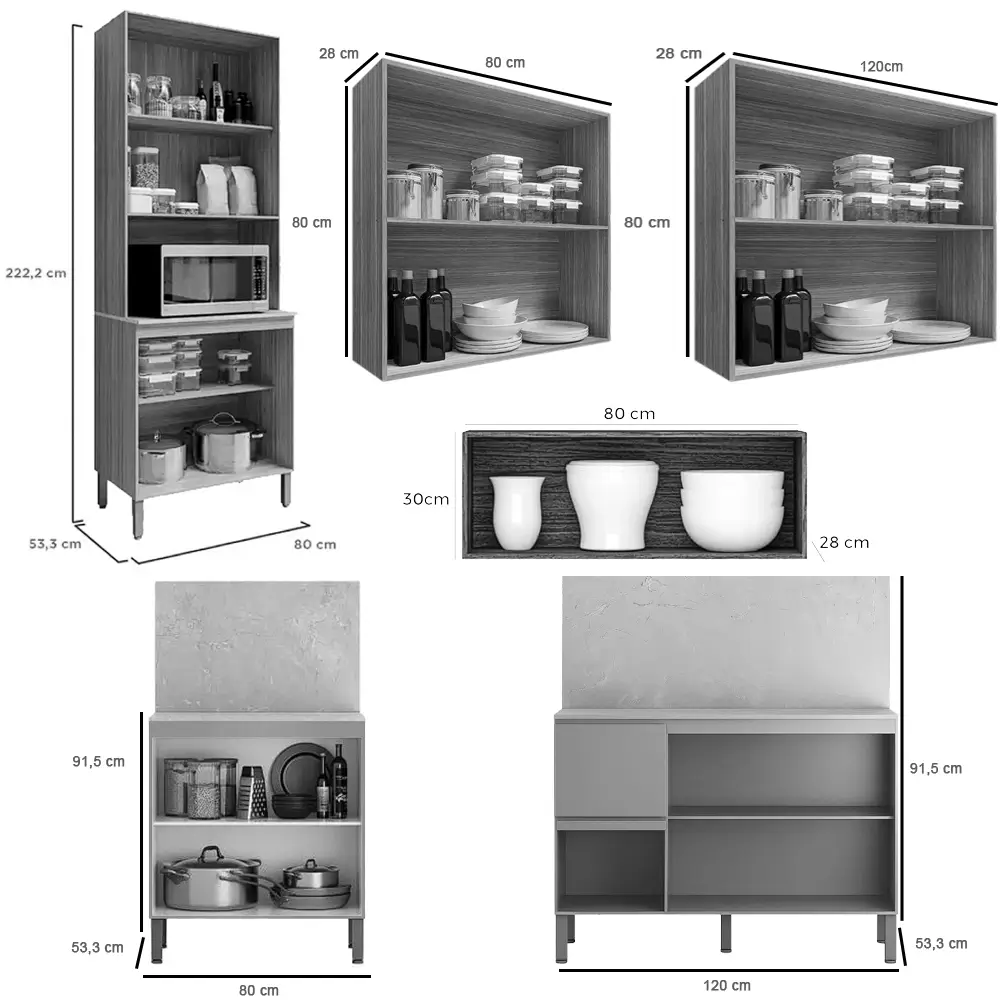 Cozinha Art Completa 6 Peças 14 Portas 2 Gavetas Kits Parana