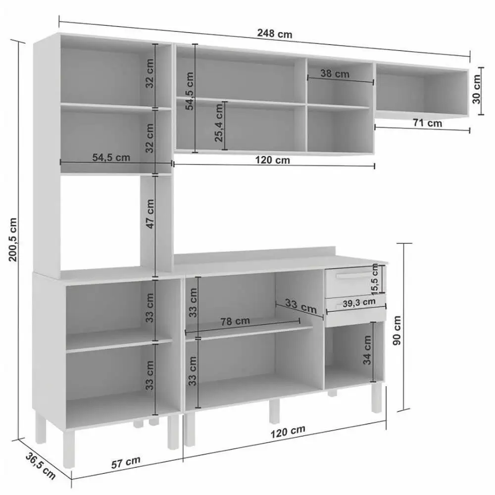 Com dimensões pensadas para a praticidade, possui uma profundidade ideal para armazenar diversos itens de cozinha. Suas portas e gavetas adicionam um toque de sofisticação ao ambiente, enquanto a parte interna oferece organização e facilidade de acesso aos seus utensílios.
