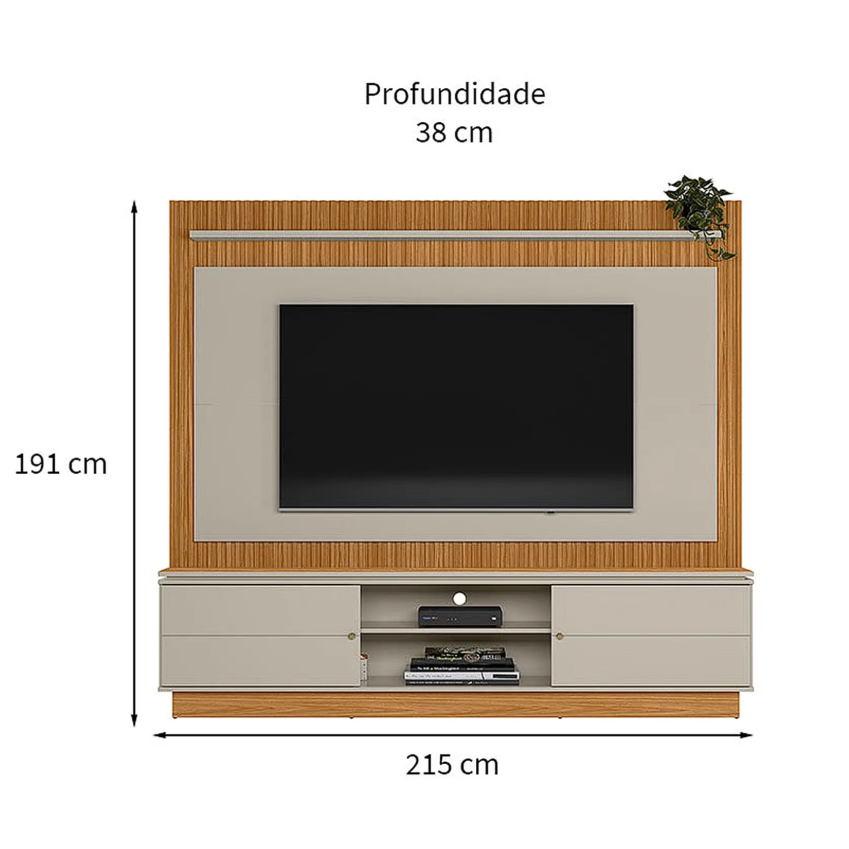 Estante Guararapes para TV até 75 Polegadas Ripado com LED 2 Portas Linea
