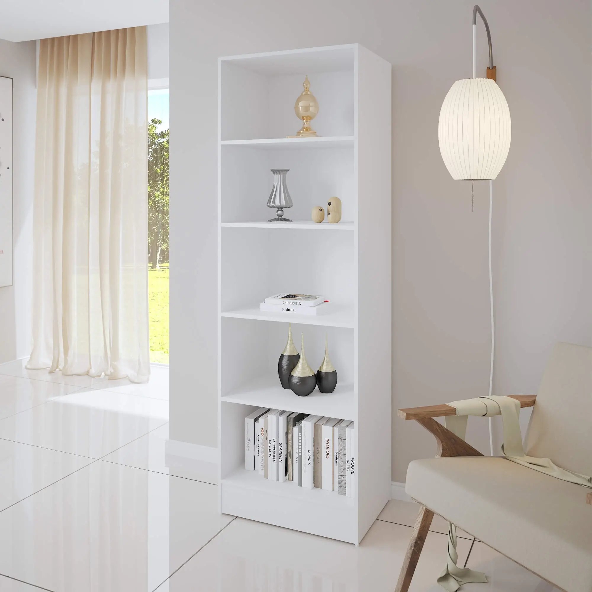 Com quatro prateleiras espaçosas, você terá espaço de sobra para exibir sua coleção de livros, objetos de decoração e até mesmo plantas. Além disso, o design moderno e clean do estante livreiro Mirage dará um toque especial à sua casa, complementando qualquer estilo de decoração.