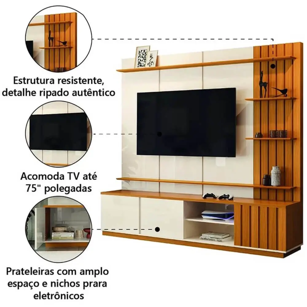 Estante Reno Home para TV até 75 Polegadas 3 Portas Ripado EDN