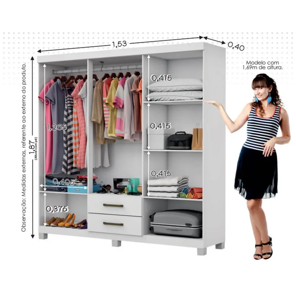 Guarda Roupa Aries Casal 6 Portas 2 Gavetas Carioca