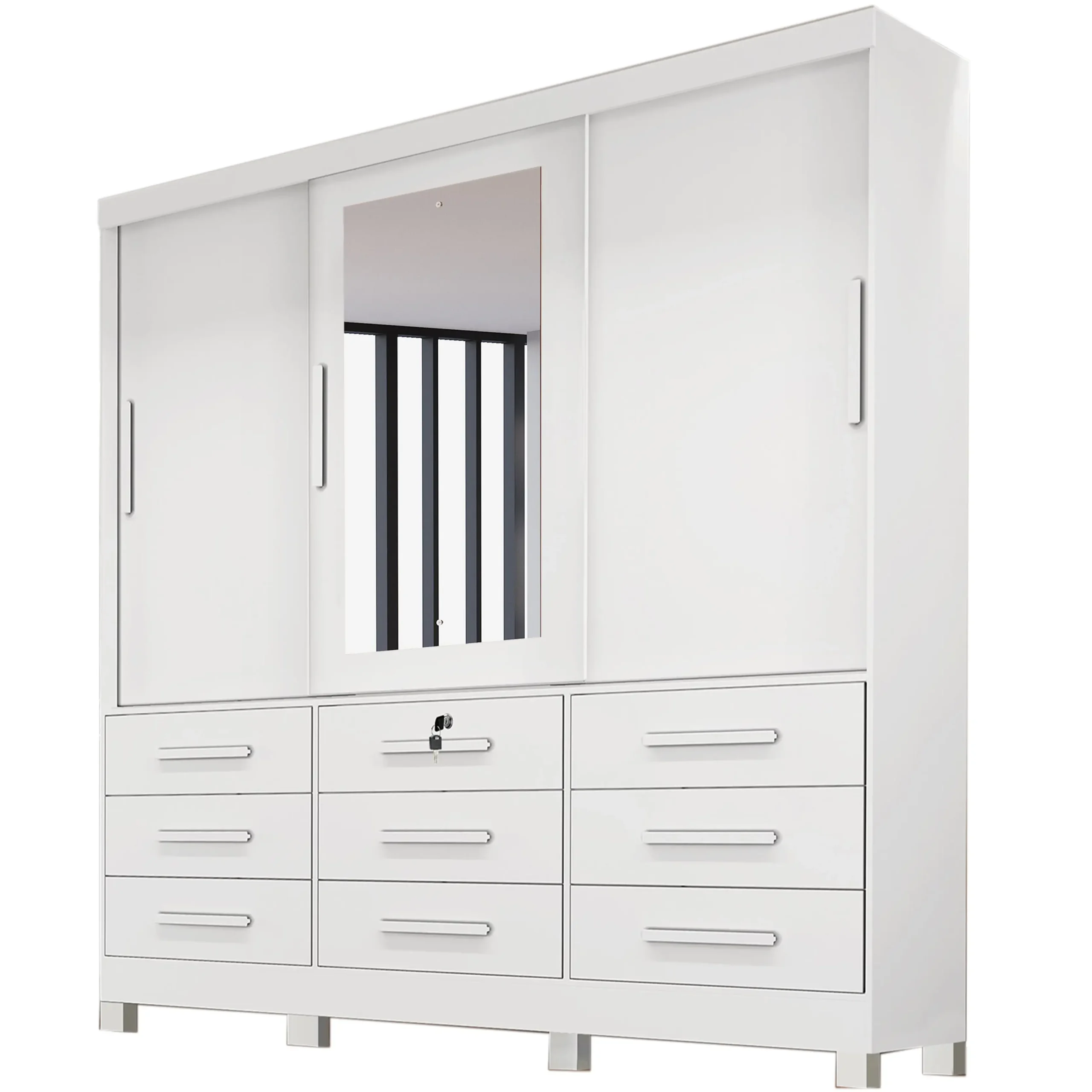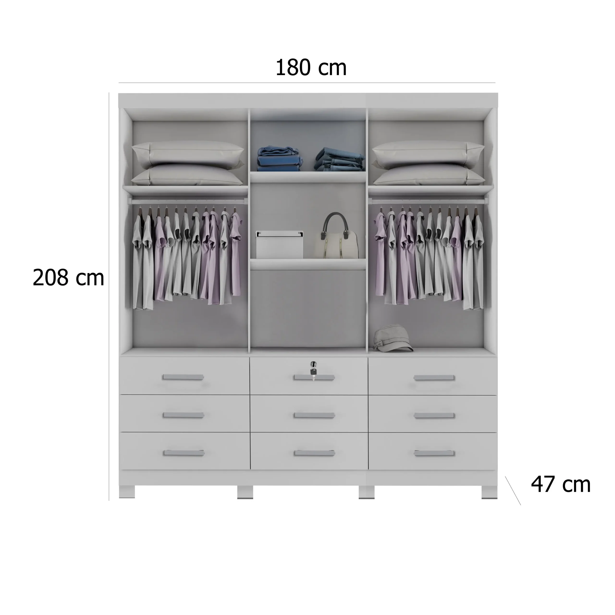 Então, se quiser ter mais organização, espaço e beleza em seu quarto, o Guarda Roupa Athenas Bianchi Casal 3 Portas 9 Gavetas é a escolha perfeita para você. Adicione esse móvel incrível ao seu dormitório e experimente a praticidade e elegância que ele oferece!