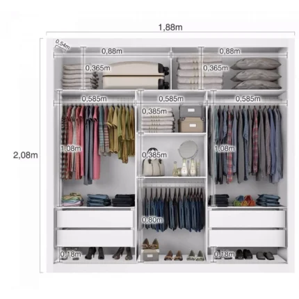 Existem uma infinidade de modelos de Guarda Roupa de Casal disponíveis de acordo com a sua necessidade. Outra dica é saber quem usará o Guarda Roupa Bahia, desse jeito, você tem noção do espaço necessário. Se precisará do de Casal, Solteiro ou Modulado com espelho. Normalmente, as mulheres tendem a usar mais espaço para guardar suas roupas, acessórios e sapatos. Então, nesse caso é ideal que o roupeiro possua dimensões grandes.