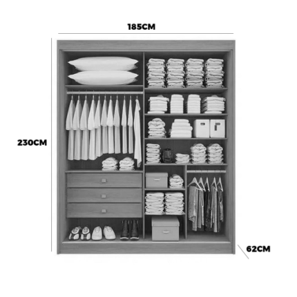 Feito com materiais de alta qualidade, este guarda-roupa é resistente e durável, garantindo que você possa usá-lo por muito, muito, muito tempo.