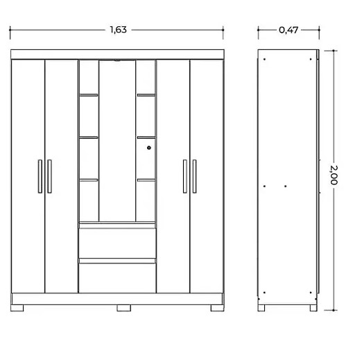 Guarda Roupa Capelinha Olimpia Solteiro com Espelho 4 Portas 2 Gavetas Albatroz