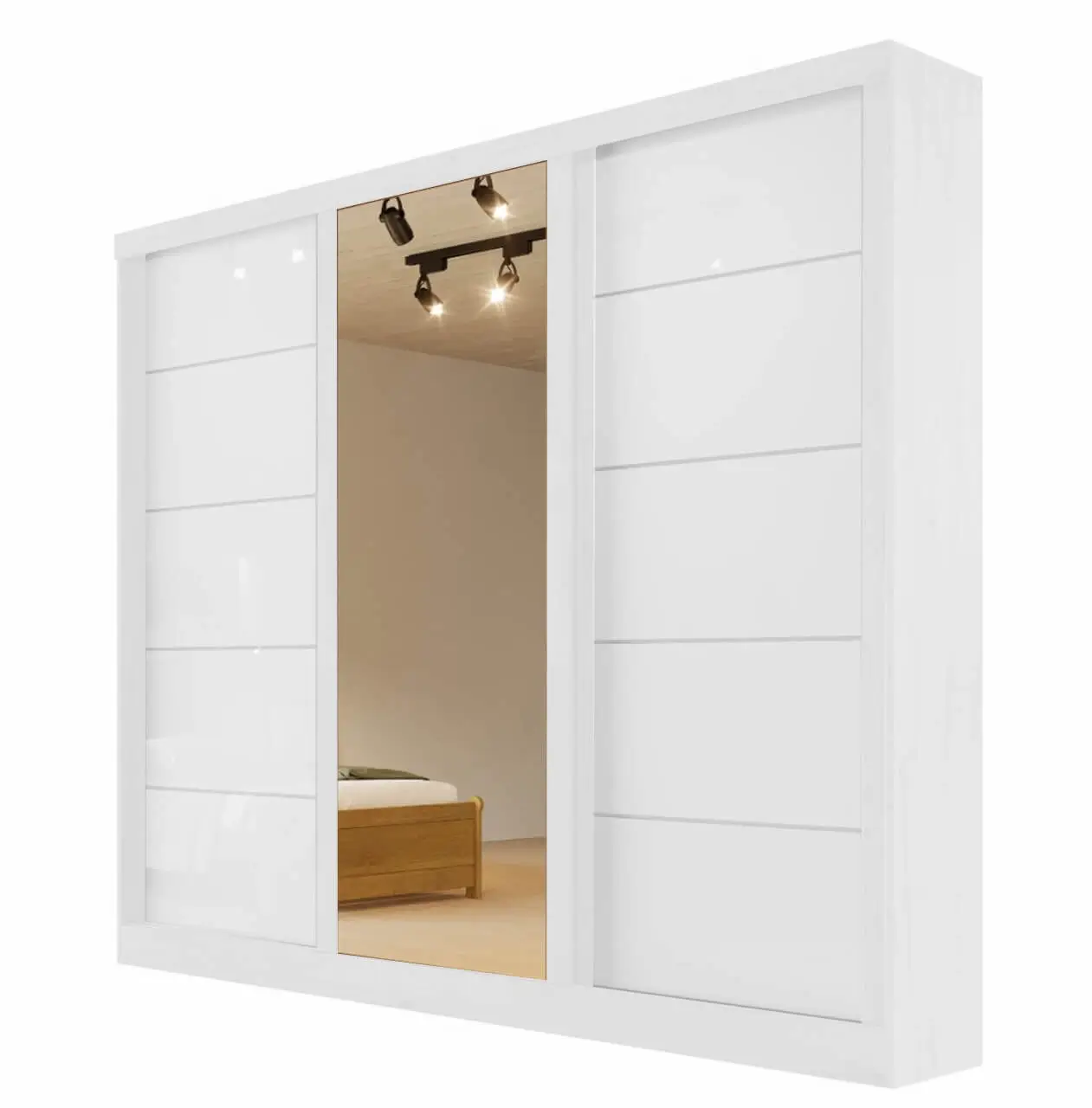 Guarda Roupa Capri Casal 3 Portas de Correr com Espelho Bianchi