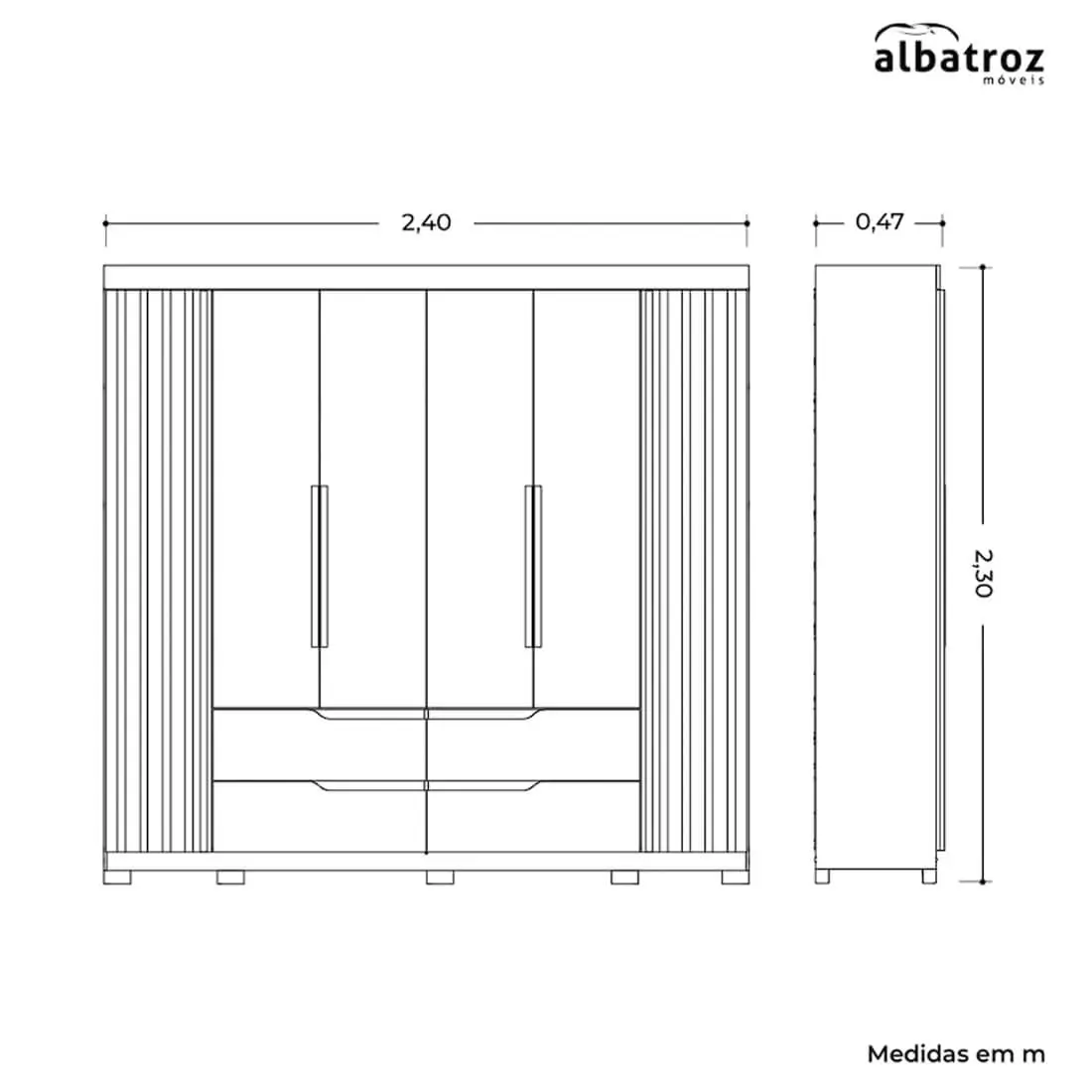 Guarda Roupa Doble Casal Ripado 6 Portas 4 Gavetas Albatroz
