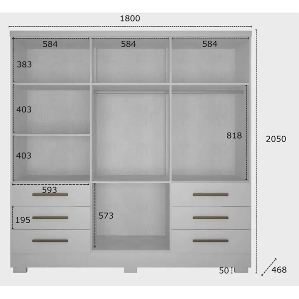 Guarda Roupa Encant com Espelho Casal 6 Portas 6 Gavetas Novo Horizonte