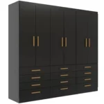 Com um visual moderno, este guarda-roupa é perfeito para casais que valorizam a praticidade e a estética. As portas proporcionam fácil acesso ao conteúdo do guarda-roupa, enquanto as gavetas espaçosas oferecem organização impecável.