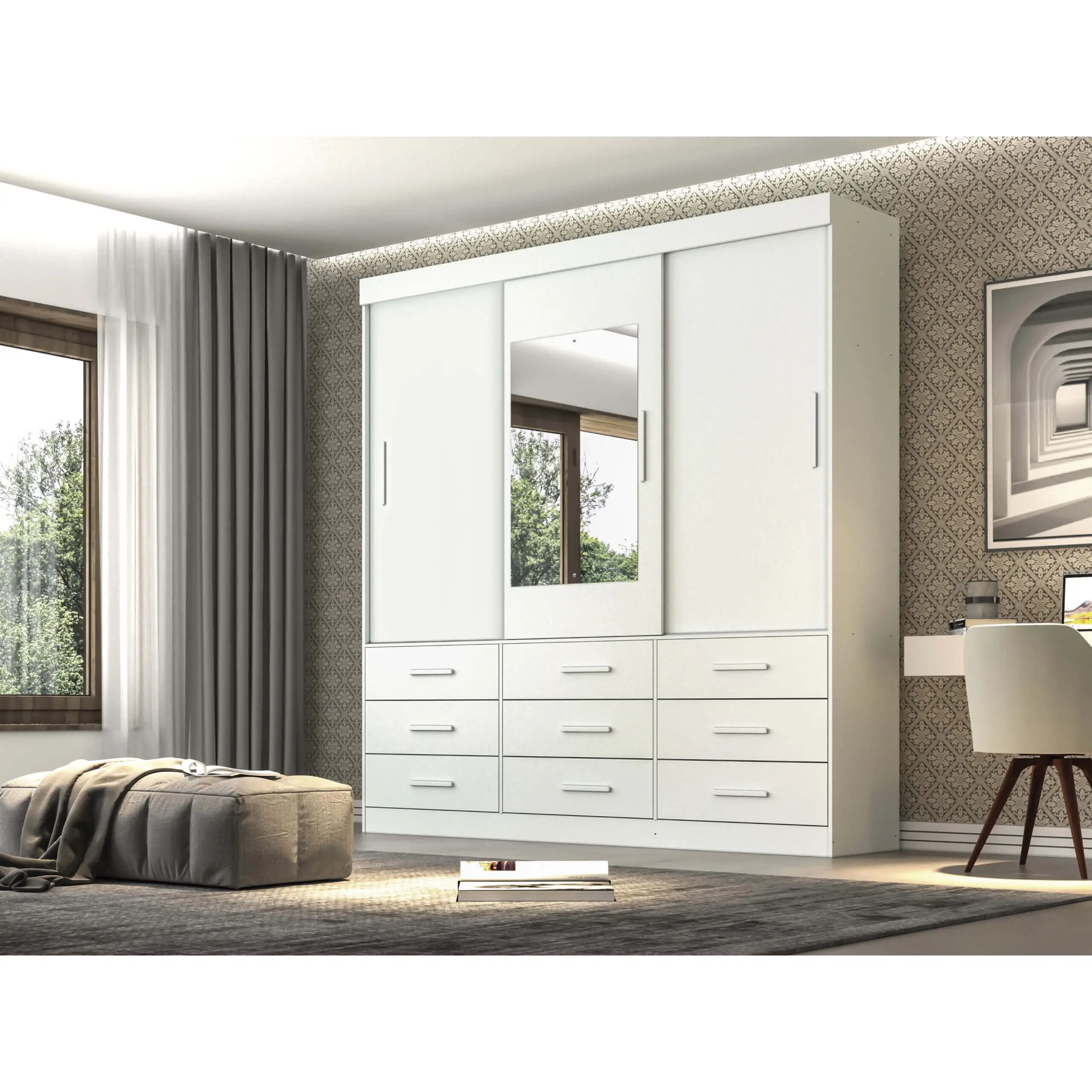 Guarda Roupa New Star Casal com Espelho 3 Portas 9 Gavetas Salleto