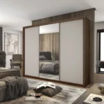 Seus trilhos metálicos asseguram uma movimentação suave das portas, enquanto o design “Divisão Ele e Ela” oferece uma organização personalizada. Suas gavetas, com corrediças telescópicas, podem ser montadas de diversas maneiras, tornando-o adaptável às suas necessidades.