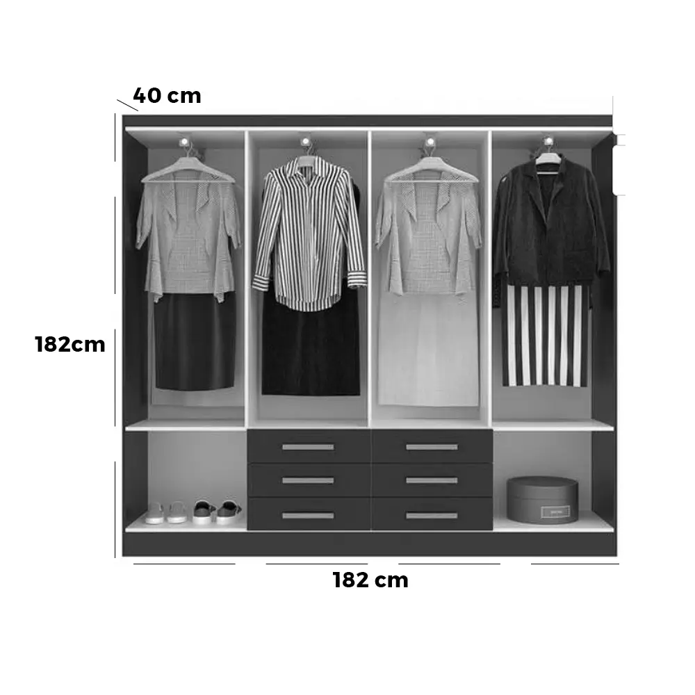 Fabricado com materiais de alta qualidade, este guarda-roupa garante durabilidade e resistência para o uso diário. As gavetas contam com corrediças que proporcionam um deslize suave, e os puxadores conferem um toque de requinte ao móvel. O Guarda Roupa Paris não é apenas um item funcional, mas também uma peça central que realça a beleza do seu dormitório, otimizando o espaço e contribuindo para um ambiente mais organizado e harmonioso.