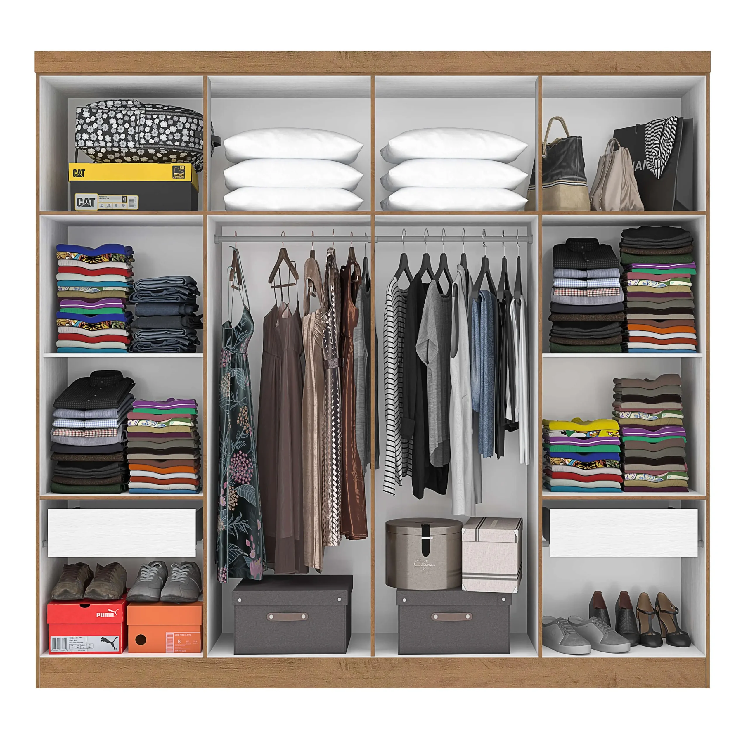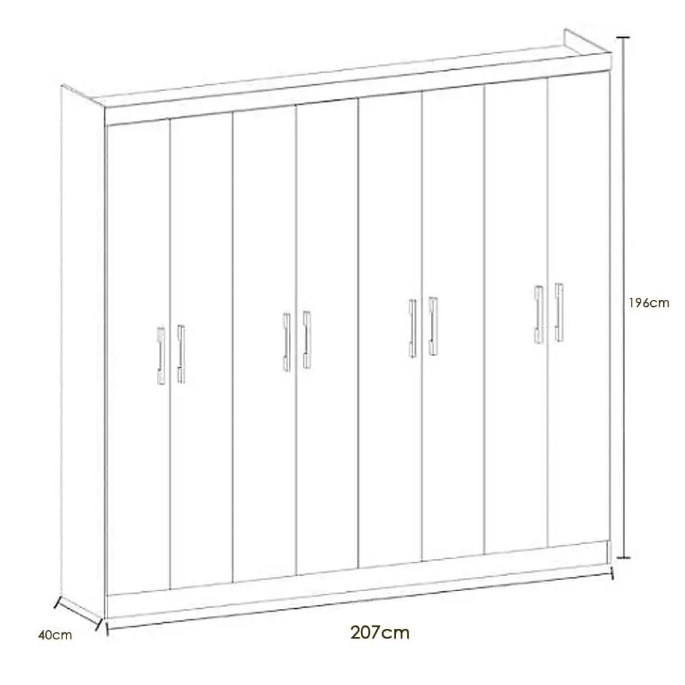 Com suas 8 portas e 2 gavetas, este móvel oferece uma ampla capacidade de armazenamento para roupas, sapatos e acessórios, mantendo tudo organizado e ao alcance das suas mãos.