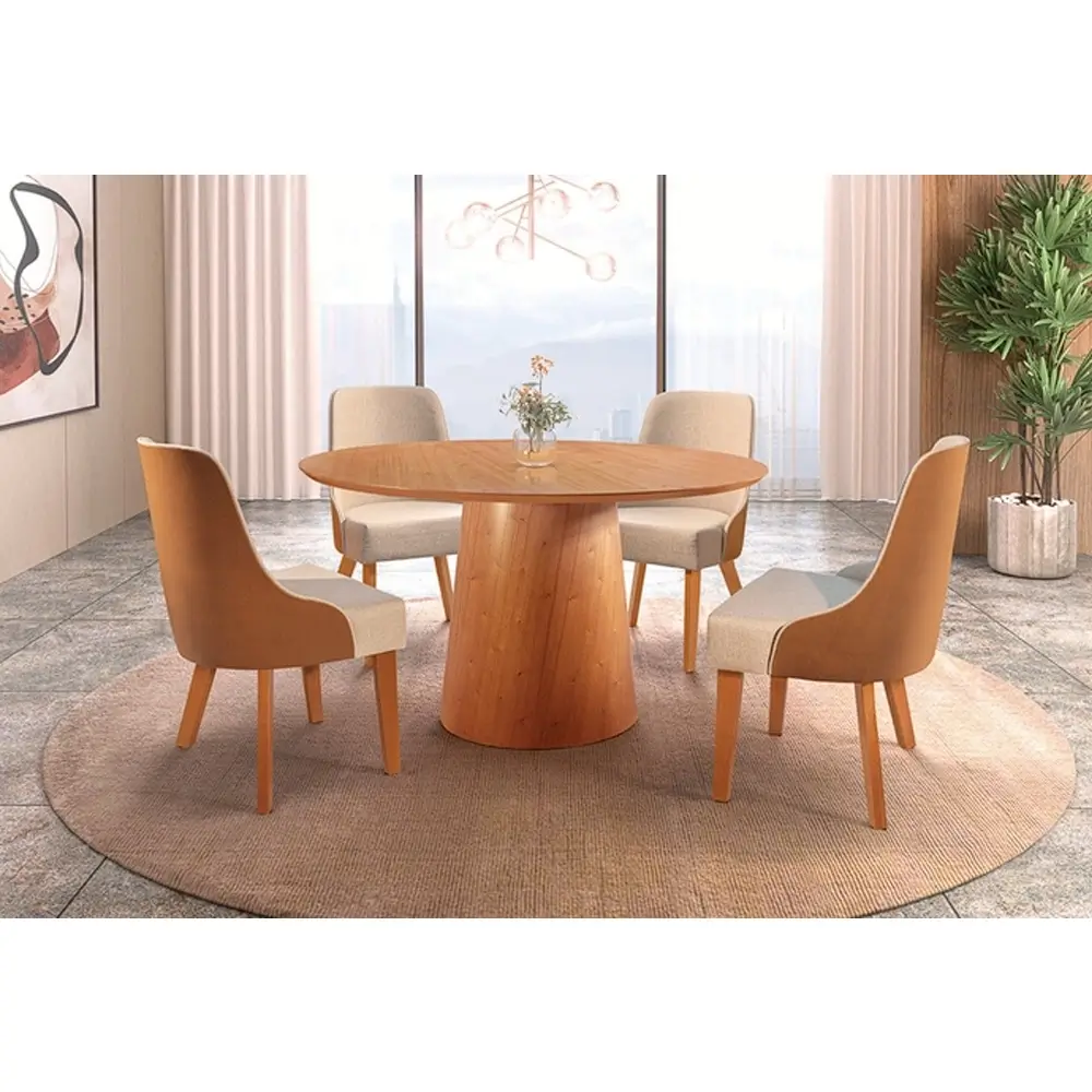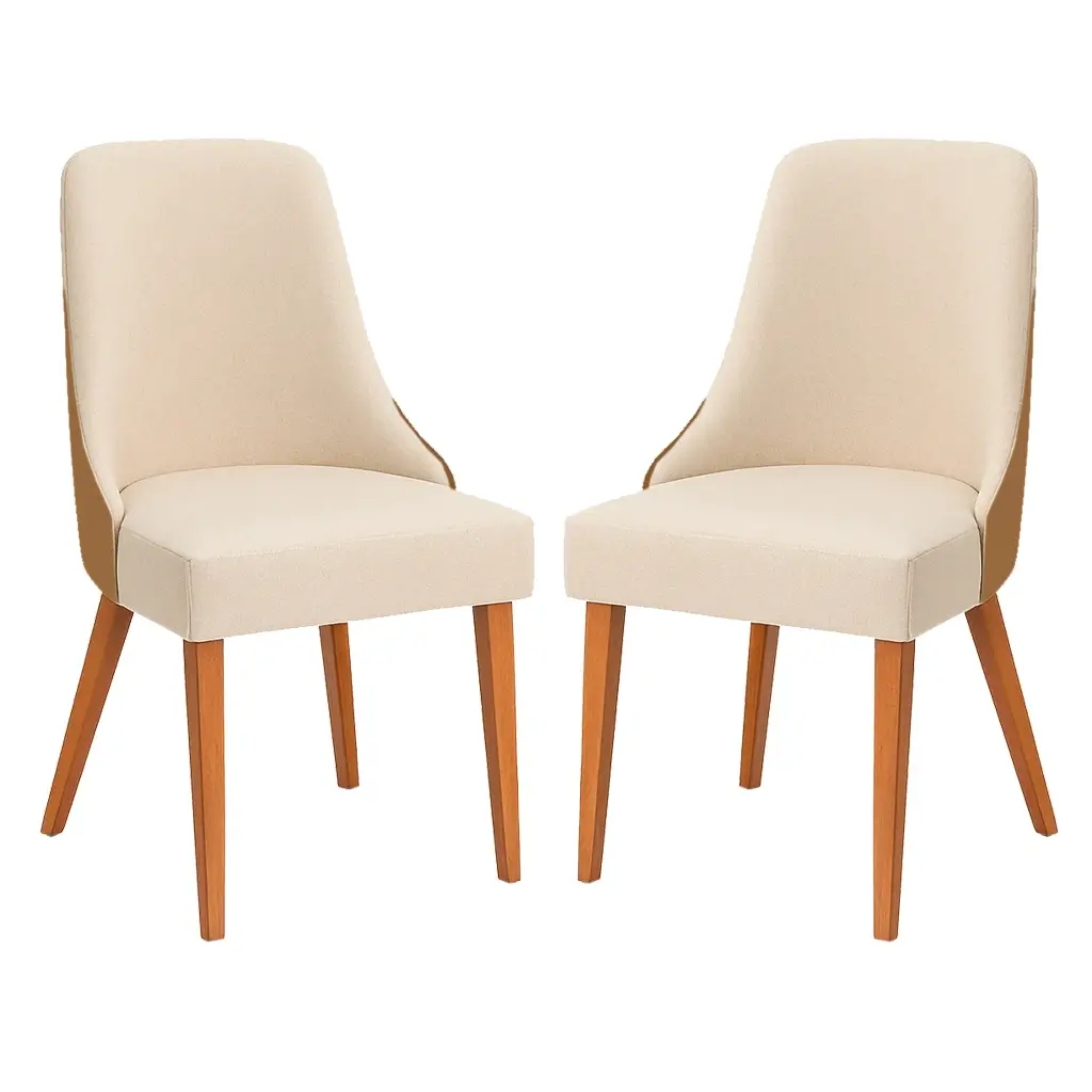 Com uma estrutura robusta em madeira maciça Tauari, o Kit 2 Cadeiras Beatriz Estofadas Tecido Linho Valverde une design e conforto de forma impecável. O estofamento combina a elegância do Couro Sintético na cor Caramelo com a suavidade do Linho, proporcionando um contraste visualmente atraente, enquanto a espuma D26 garante o máximo de conforto para o seu dia a dia. Este kit é a união perfeita entre design contemporâneo, materiais nobres e conforto excepcional, tornando-o uma adição valiosa para qualquer casa.