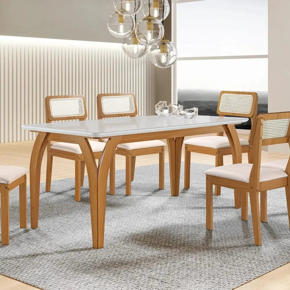 Com dimensões generosas de 180x90cm, acomoda com facilidade até seis pessoas, oferecendo ampla área para refeições, encontros ou atividades do dia a dia. A estrutura firme proporciona estabilidade e segurança, enquanto o acabamento de qualidade garante durabilidade e fácil manutenção. Seu estilo versátil permite combinações com diferentes tipos de cadeiras e decorações.