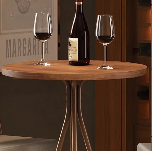 Mesa Bistro 1575 Redonda em Aço com Tampo Madeirado Carraro