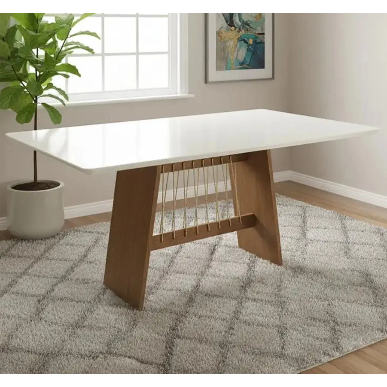 Mesa Damiana 160×90 com Tampo de Vidro Ba56-cn/ta26-frv